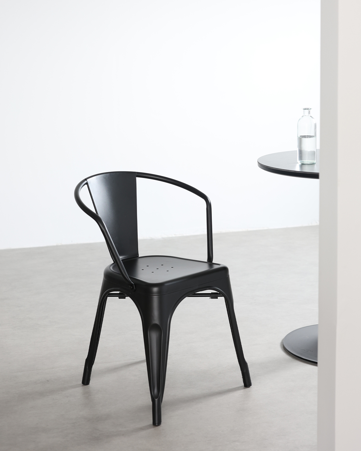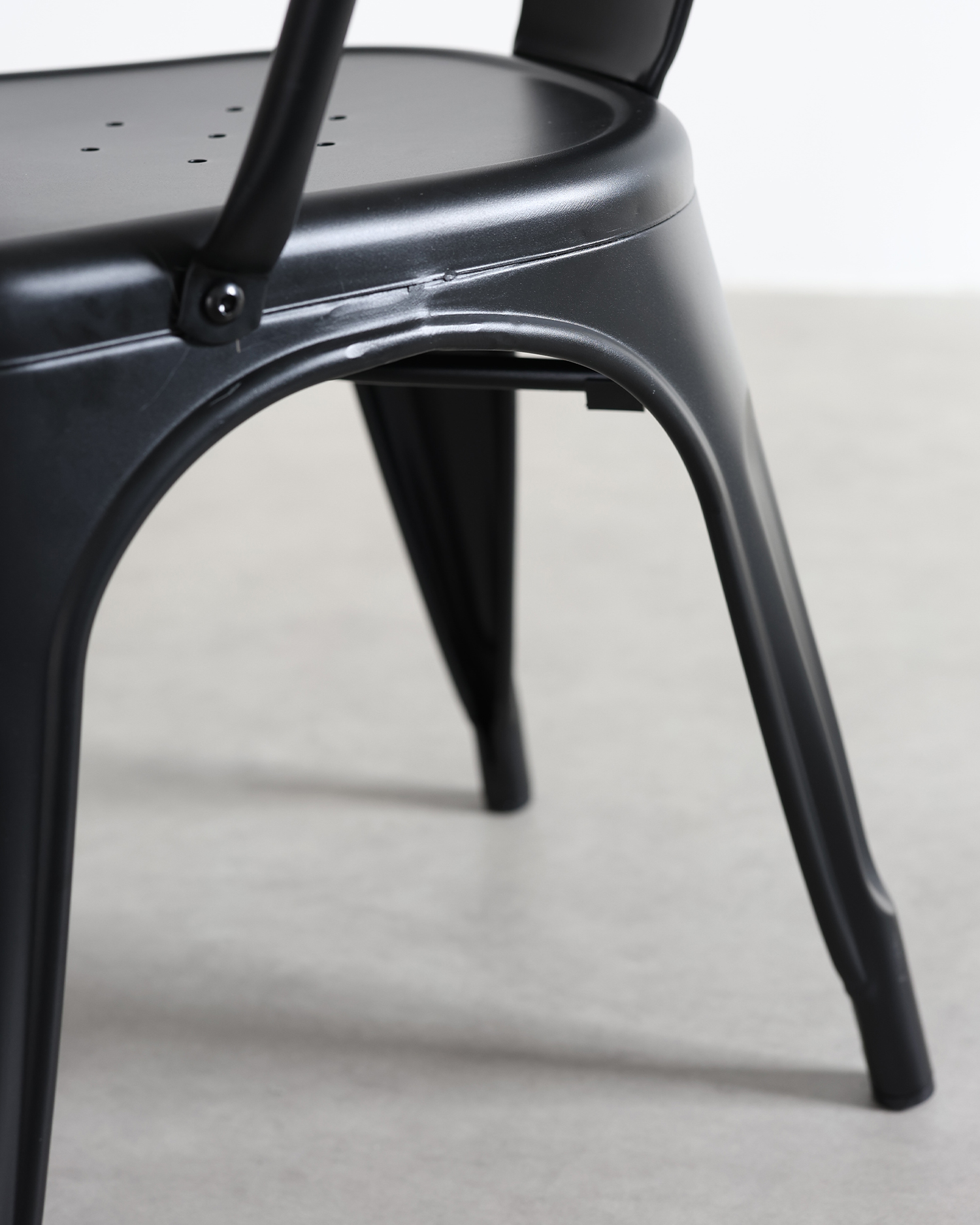 • Deze stoel is een meesterwerk van industrieel ontwerp, gemaakt van hoogwaardig ijzer en afgewerkt in een slanke zwarte kleur die elegantie straalt. De aandacht voor detail in zijn constructie is duidelijk in elk aspect, van het precieze lassen tot de soepele contouren van het frame.