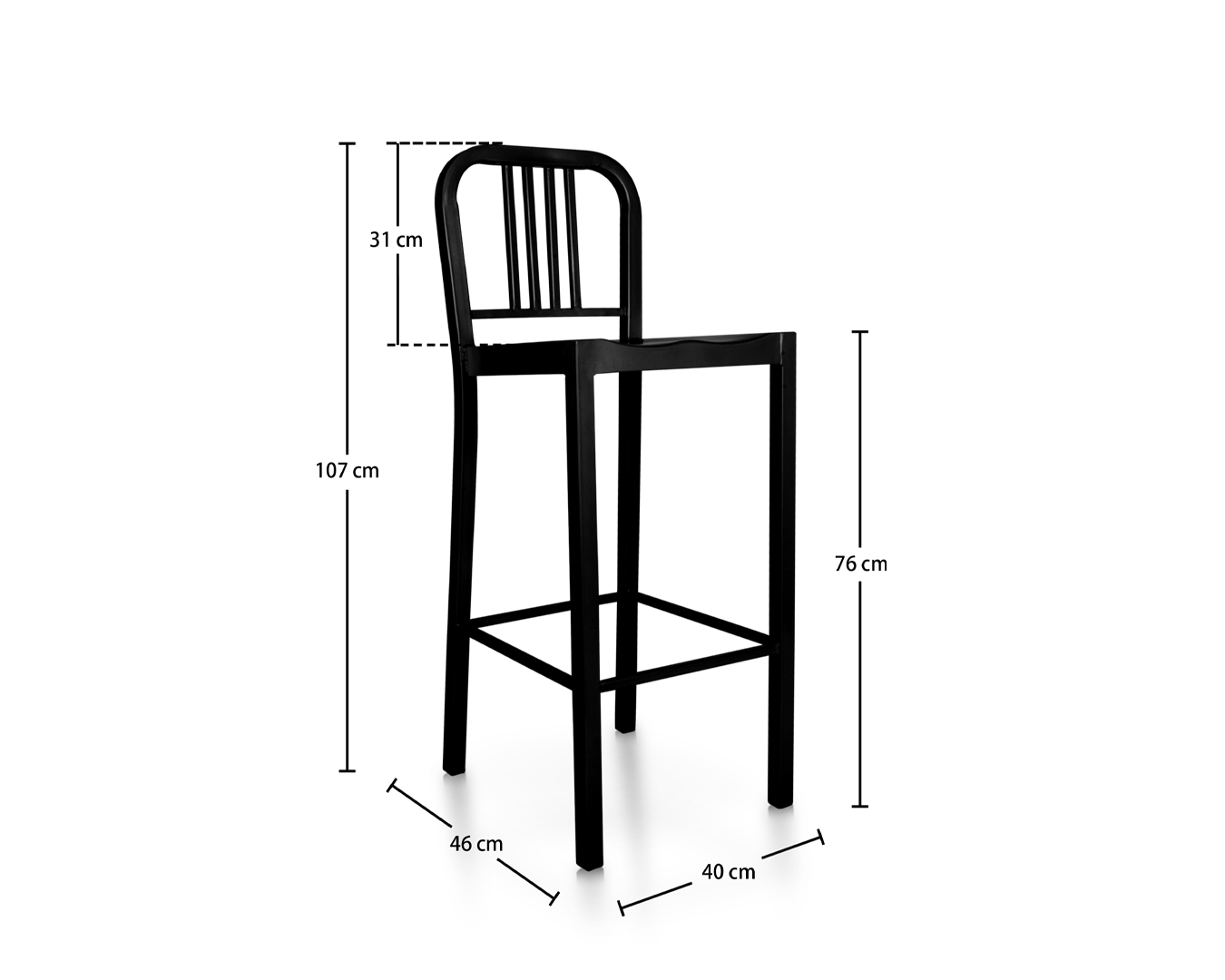 • Geconstrueerd in nauwgezet, met aandacht voor detail die in elk aspect duidelijk blijkt, is het ijzeren frame ontworpen om zwaar gebruik te weerstaan, terwijl de zwarte afwerking verzet tegen slijtage, waardoor langdurige prestaties worden gewaarborgd. De dwarsbalken aan de basis verbeteren niet alleen de stabiliteit, maar voegen ook een decoratief element toe aan het algemene ontwerp van de stoel.