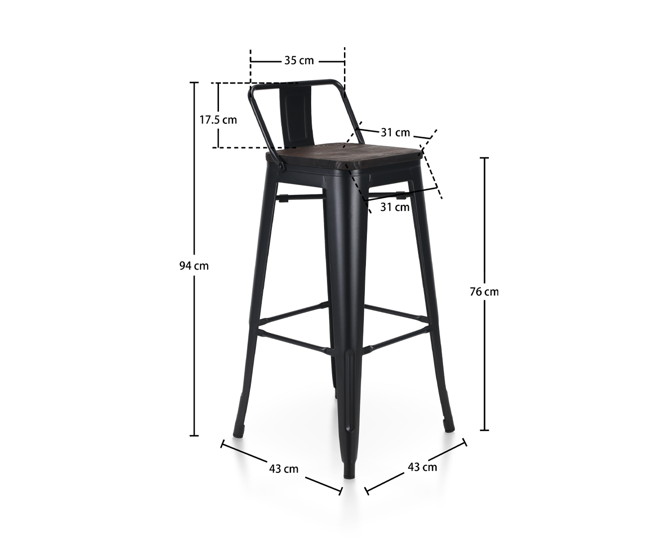 - Grootte: W43*D43*H94 cm / sh: 76cm