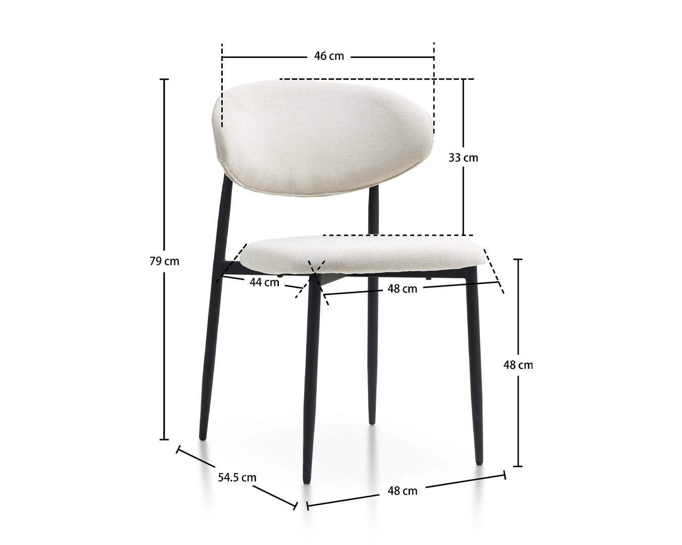 • Het ontwerp combineert naadloos klassieke elegantie met moderne eenvoud. De stoel en rugleuning zijn gestoffeerd in een luxueuze beige stof, waardoor een warme en uitnodigende look wordt. Ondersteund door een strak zwart metalen frame straalt de stoel een gevoel van stevigheid en duurzaamheid uit. De rugleuning is ontworpen met een zachte curve en biedt ongeëvenaard comfort en ondersteuning.