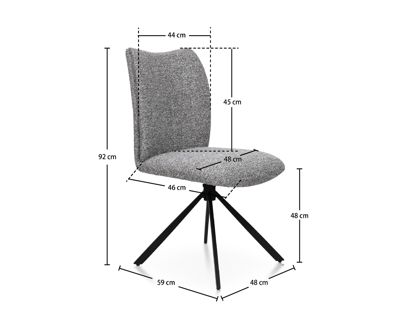 • Deze stoel is ontworpen met slanke lijnen en verfijnde stof en brengt een verfrissende, minimalistische aanraking aan elke eetruimte. De Swivel -functie voegt veelzijdigheid en gemak toe, waardoor soepele beweging mogelijk is terwijl je geniet van maaltijden of gesprekken.