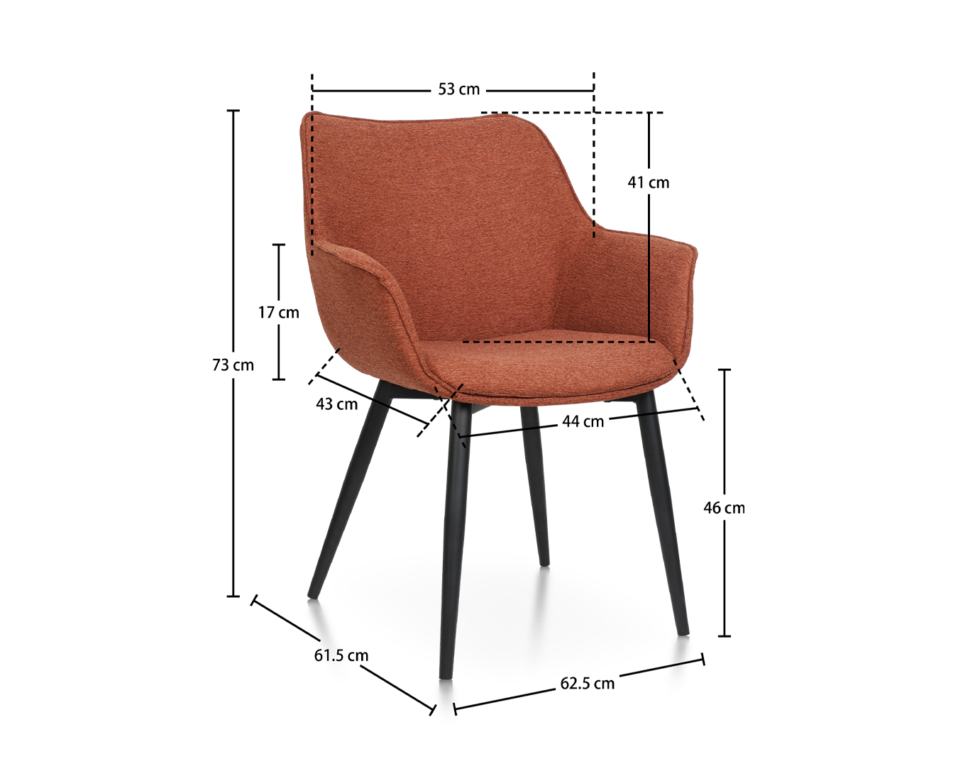 - Grootte: W62.5*D61.5*H73CM / SH: 46cm