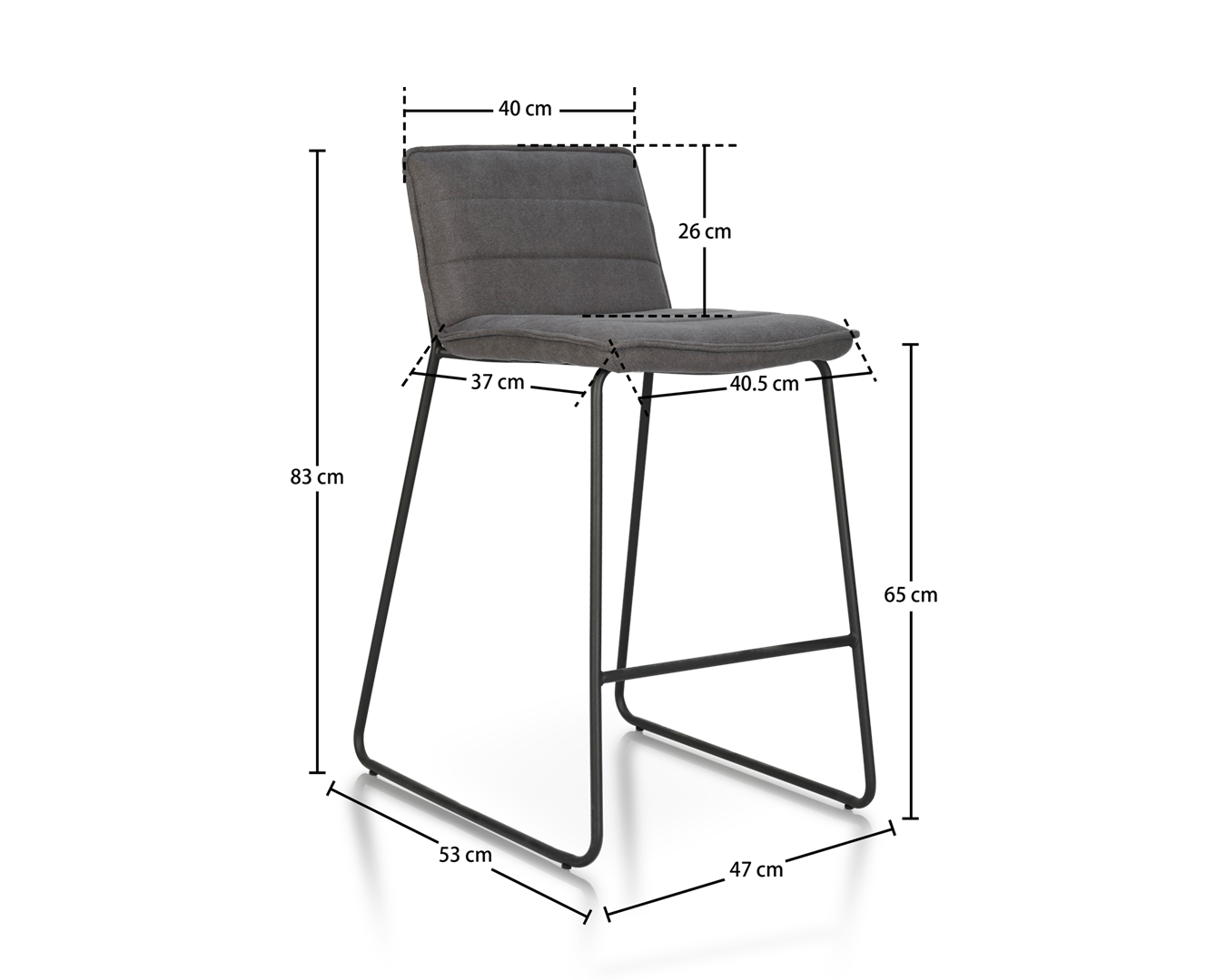 Thuis / Producten / Eetkamerstoel / Gestoffeerde grijze barkruk
