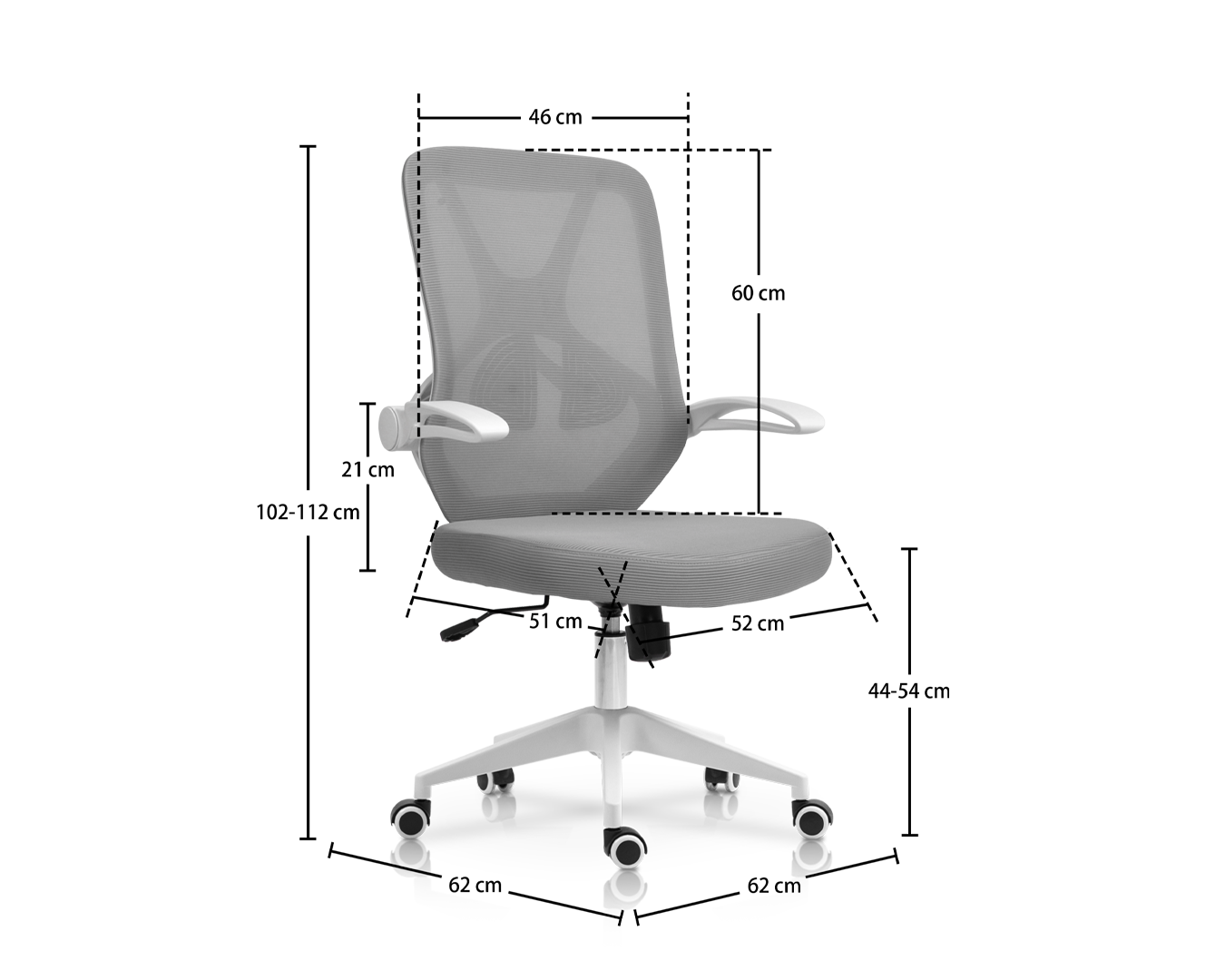 -Grootte: W62*D62*H102-112 cm / SH: 44-54 cm