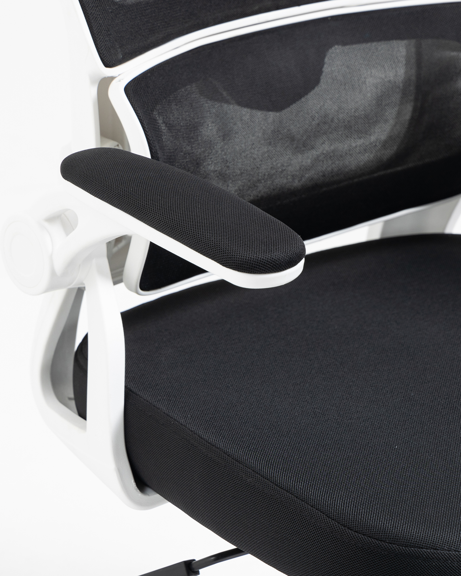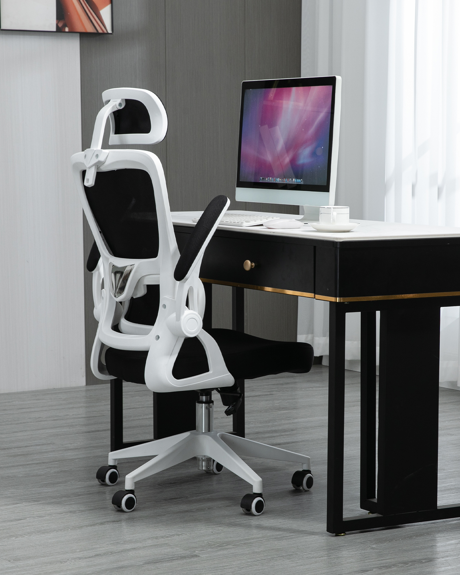 • Deze bureaustoel heeft een opvallend wit en zwart kleurenschema, met een uniek ontwerp dat een modern kantoordecor is aangevuld. Uitgerust met verstelbare armleuningen, stelt deze stoel u in staat om de positie van uw armen aan te passen voor optimaal comfort. De armleuningen kunnen omhoog of omlaag worden verplaatst en kunnen ook worden aangepast aan hoek naar binnen of naar buiten, zodat uw armen in de meest natuurlijke positie worden ondersteund.