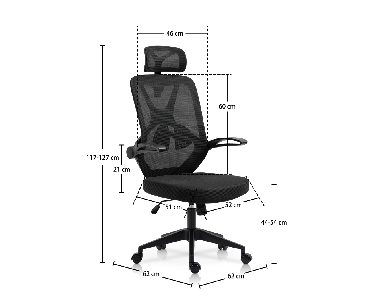 -Grootte: W62*D62*H117-127 CM / SH: 44-54 CM