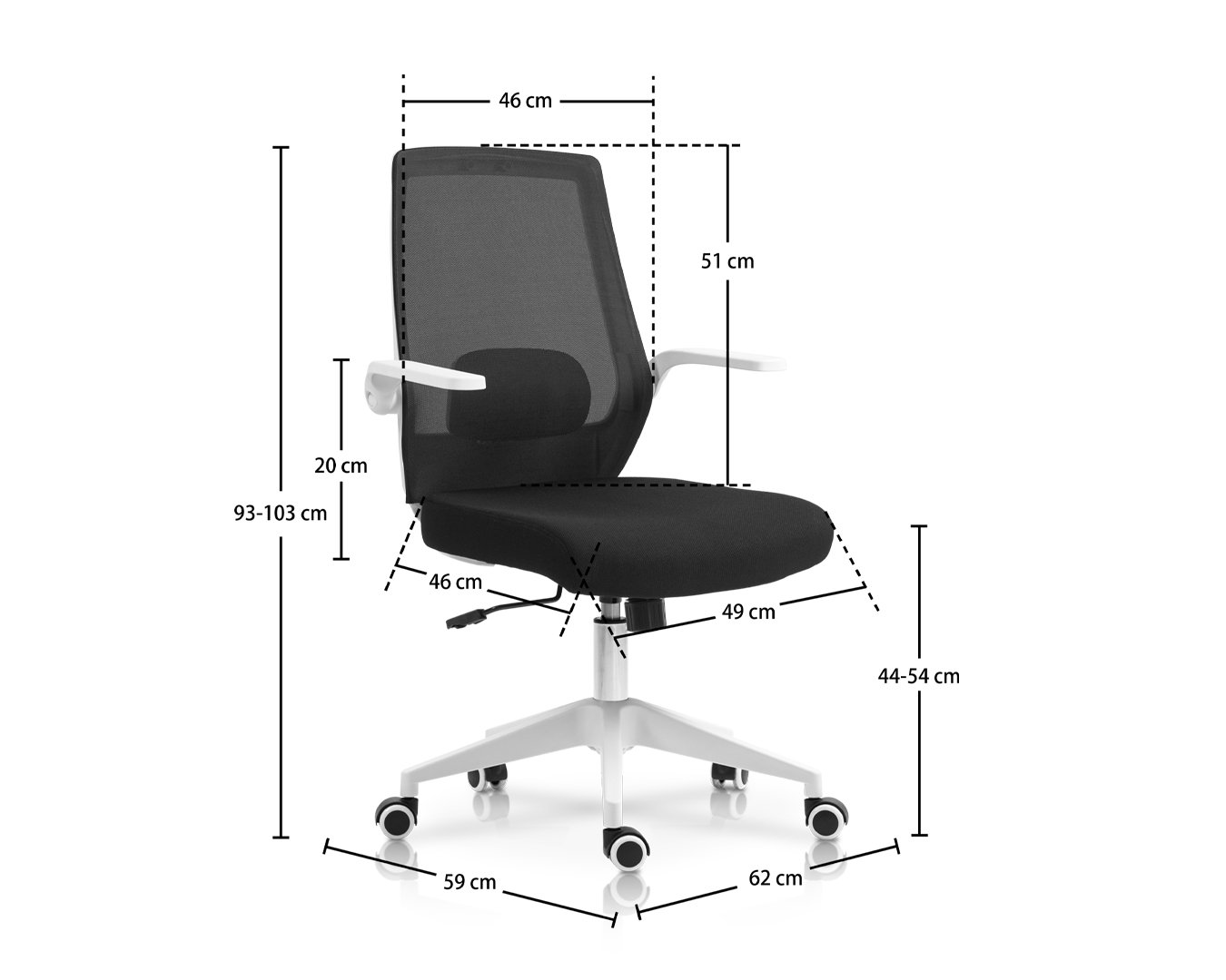 -Grootte: W62*D59*H93-103 cm / SH: 44-54 cm