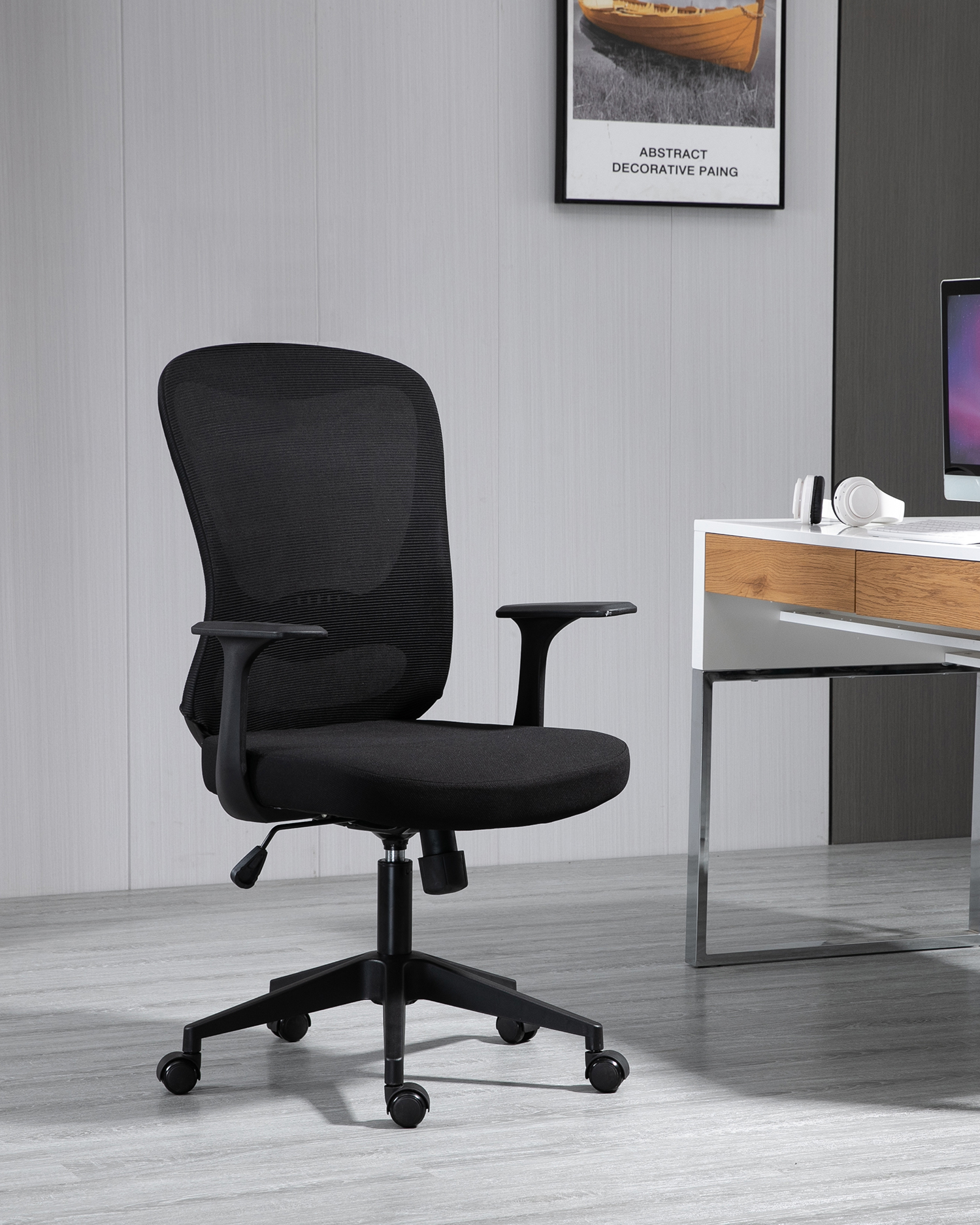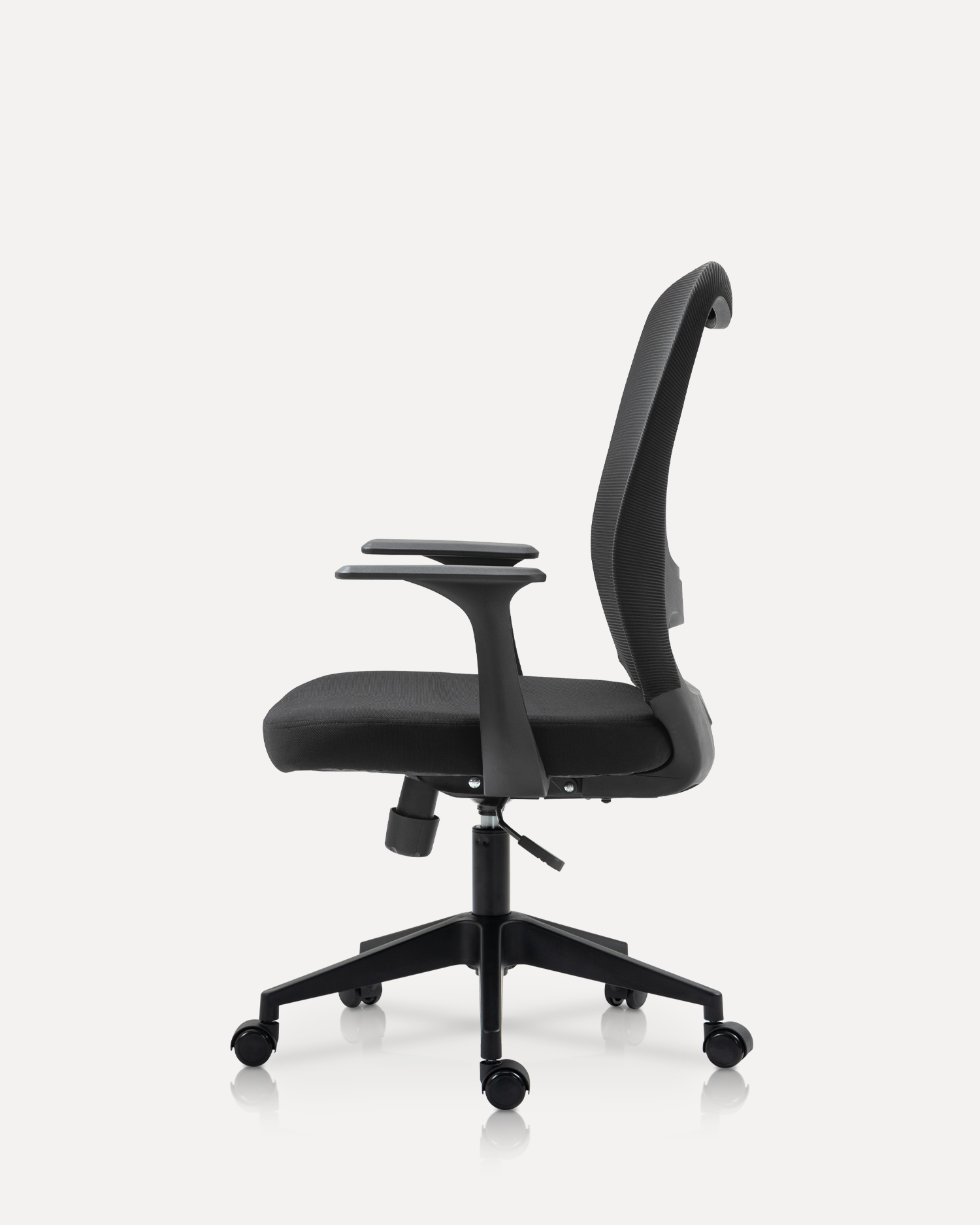 • Ergonomie vormt de kern van het ontwerp van deze stoel. Met het verstelbare hoogtemechanisme kunt u de stoel aanpassen om aan uw specifieke behoeften te voldoen, zodat uw voeten plat op de grond zijn en uw knieën zich in een hoek van 90 graden bevinden. De armleuningen kunnen worden aangepast om de perfecte ondersteuning voor uw armen te bieden, waardoor de spanning op uw schouders en nek wordt verminderd. De lumbale ondersteuning ingebouwd in de rugleuning bevordert de juiste houding, waardoor het algehele comfort en de productiviteit wordt verbeterd.