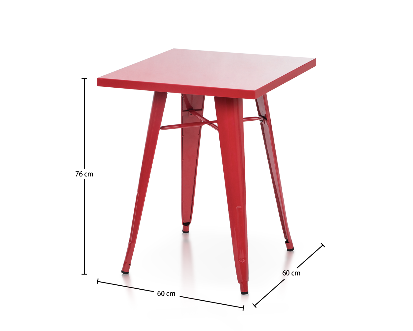 • Ontdek de veelzijdigheid en duurzaamheid van deze prachtige rode ijzeren tafel. Ontworpen met zowel stijl als praktisch in gedachten, heeft de tafel een vierkante metalen top die voldoende ruimte biedt voor verschillende activiteiten.