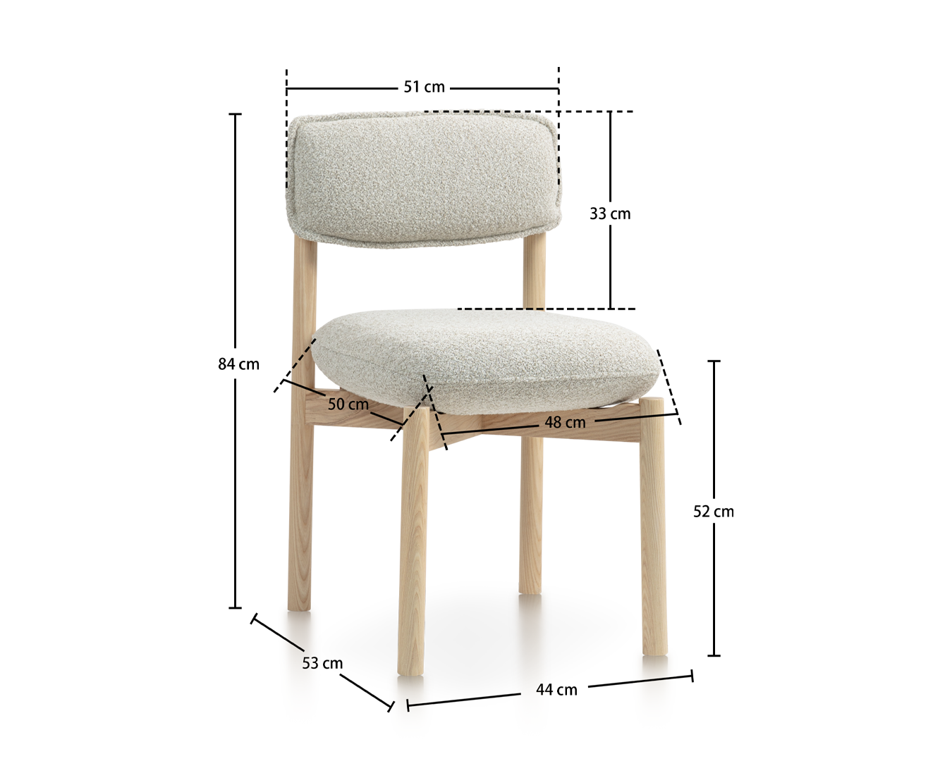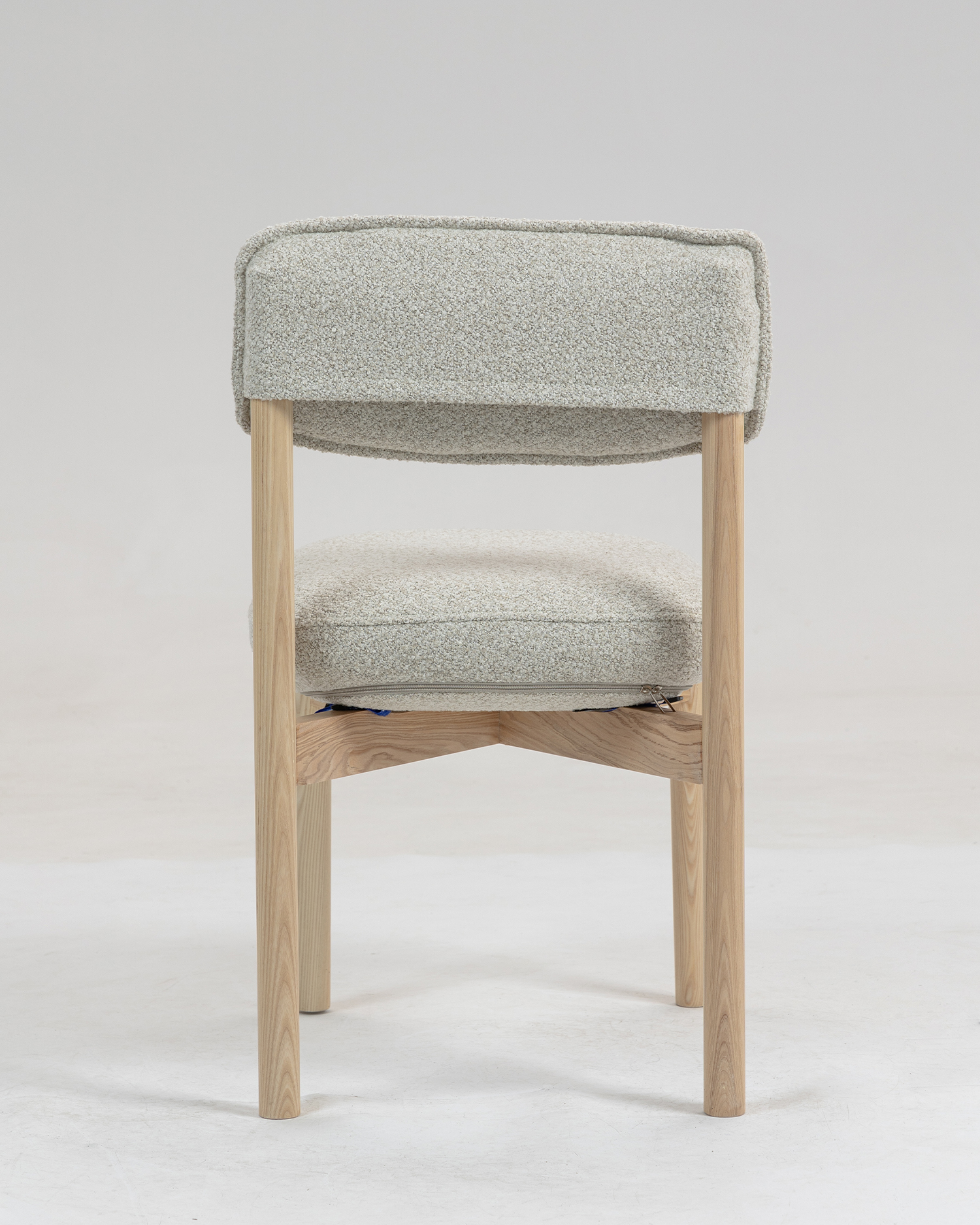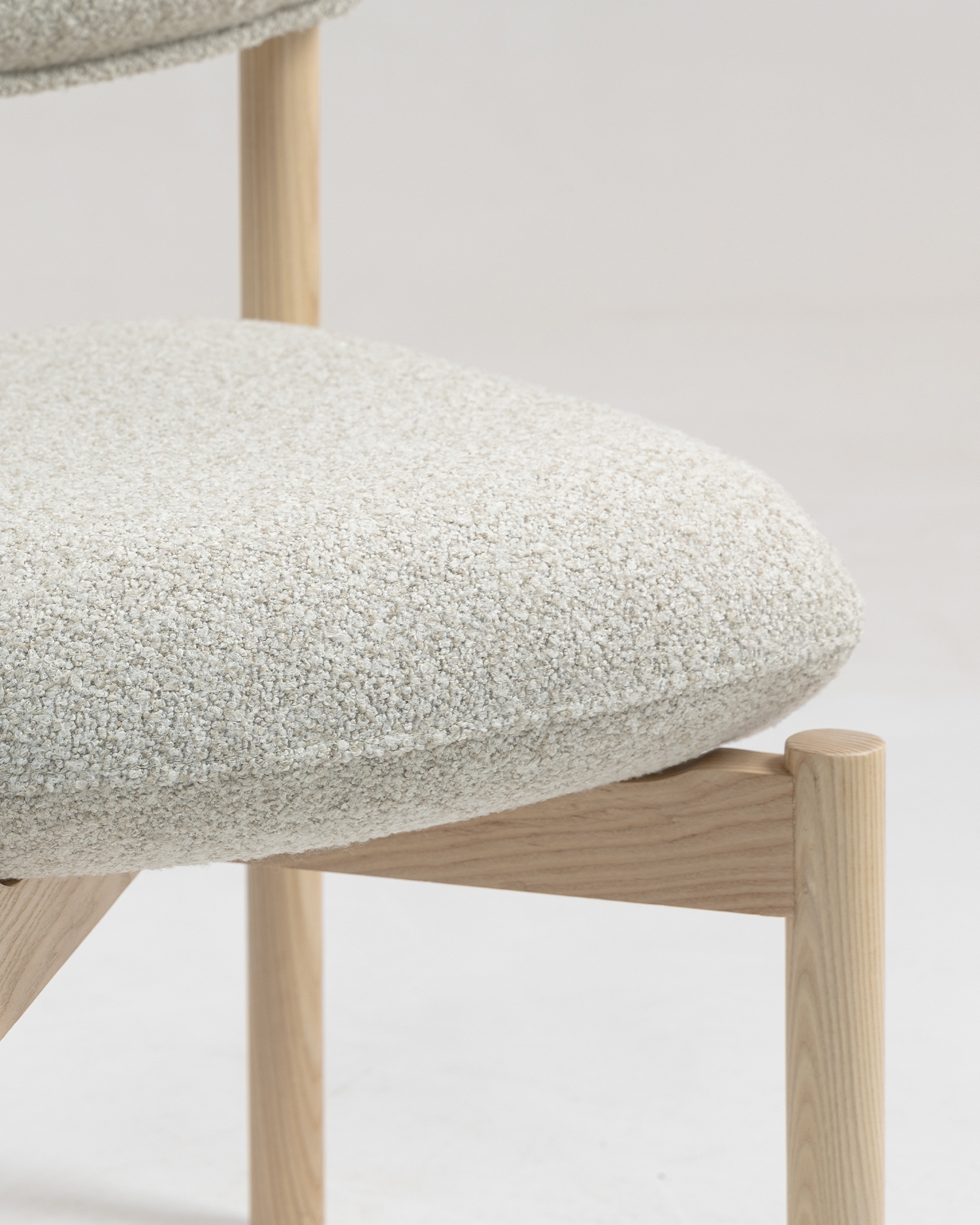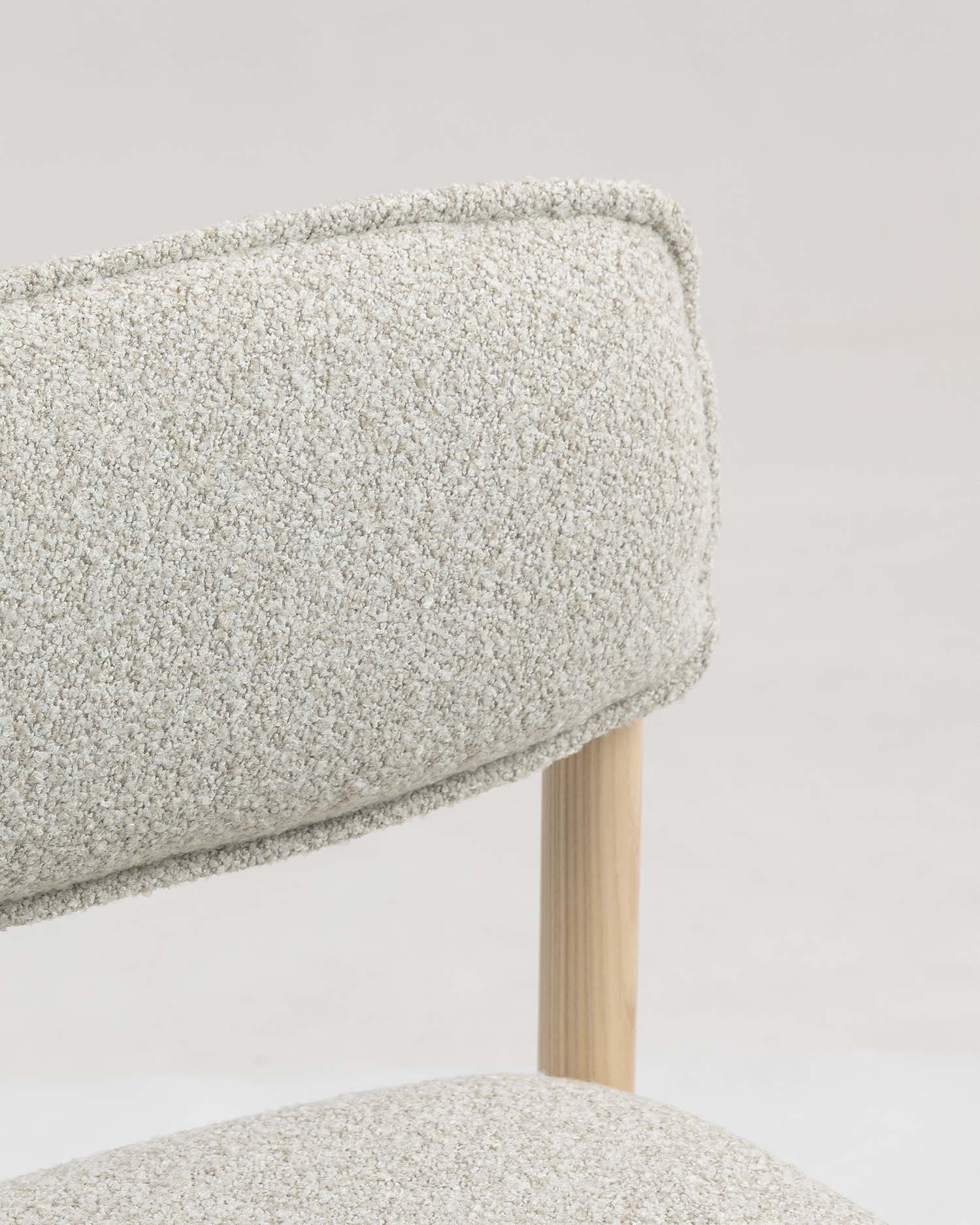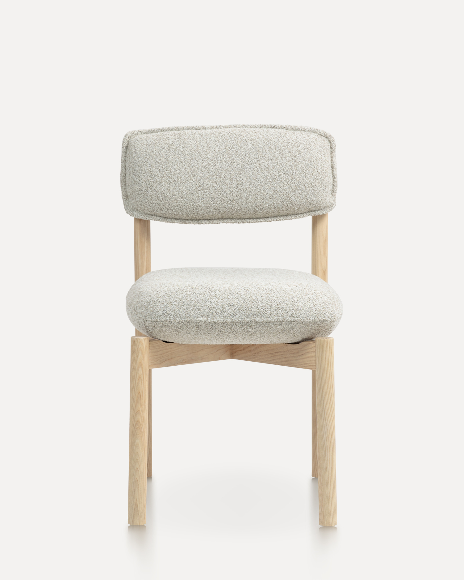 • Gemaakt van hoogwaardig ashout, benadrukt de lichtgekleurde afwerking de natuurlijke schoonheids- en graanpatronen van het materiaal, waardoor een vleugje warmte en elegantie aan elke ruimte wordt toegevoegd. De pluche, gestoffeerde stoel en rugleuning zijn ontworpen voor maximaal comfort, zodat u langdurig in stijl kunt ontspannen. De zachte, gestructureerde stof voelt niet alleen luxueus aan tegen de huid, maar vormt ook een aanvulling op het minimalistische ontwerp van de stoel.